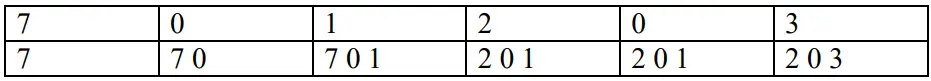 Câu 11: Với thuật toán thay thế trang LRU sử dụng 3 khung trang, số hiệu các trang đi vào lần lượt là: 7,0,1,2,0,3 như bảng sau: Số lỗi trang là: